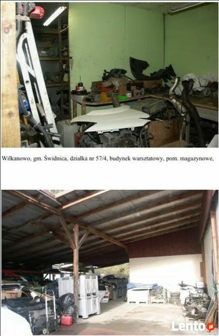 udział 1/2 w nieruchomości zabudowanej położonej w Wilkanowie przy ul. Wandy Komarnickiej 13 oznaczonej w ewidencji gruntów jako działka nr 57/4 o powierzchni 0,1382 ha, dla której Sąd Rejonowy w Zielonej Górze V Wydział Ksiąg Wieczystych prowadzi księgę wieczystą KW ZG1E/00052192/7. Wschodnia część terenu nieruchomości jest zabudowana budynkiem biurowym, budynkiem warsztatu samochodowego oraz wiatą drewnianą z częścią socjalno-sanitarną w zabudowie zwartej.